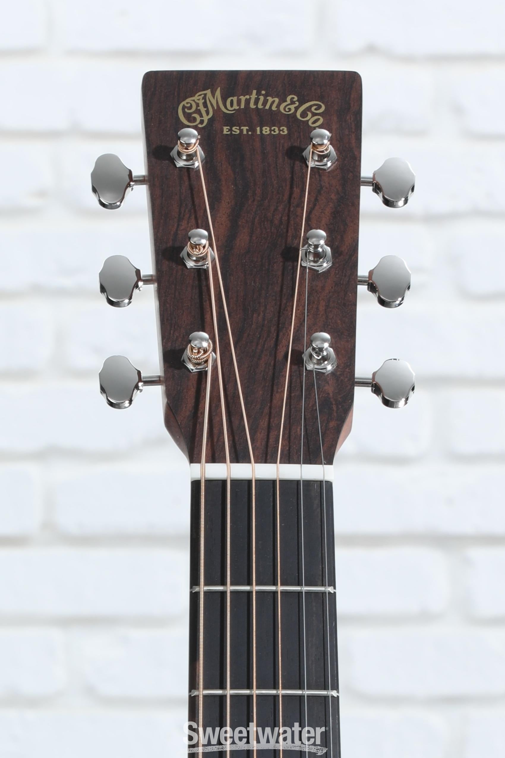 Vestavěná elektronika Martin E1 vám umožní rychlé připojení k vašemu oblíbenému akustickému zesilovači, nahrávacímu rozhraní nebo dokonce k domácím PA systémům v klubech. Hudebníci ve Sweetwateru jsou ohromeni ovládáním tónu, hlasitosti a fázového obrácení systému E1, které vám umožní věrně zesílit bohatost a teplo vašeho Vintage Inspired Road Series GPC-10E a zároveň upravit kvalitu zvuku dle libosti. Tlačítko pro fázové obrácení na E1 je obzvláště praktické pro eliminaci pichlavé zpětné vazby v těsných prostorách, kdy se nevyhnete stání poblíž zesilovače. Systém E1 je navíc vybaven vestavěnou ladičkou. Můžete ladit bez jakýchkoli kabelů, takže přestávky v ladění na pódiu i na gauči jsou stejně bezbolestné. S takto dobrou vestavěnou elektronikou si budete jisti, že GPC-10E je vybaven na cokoli.